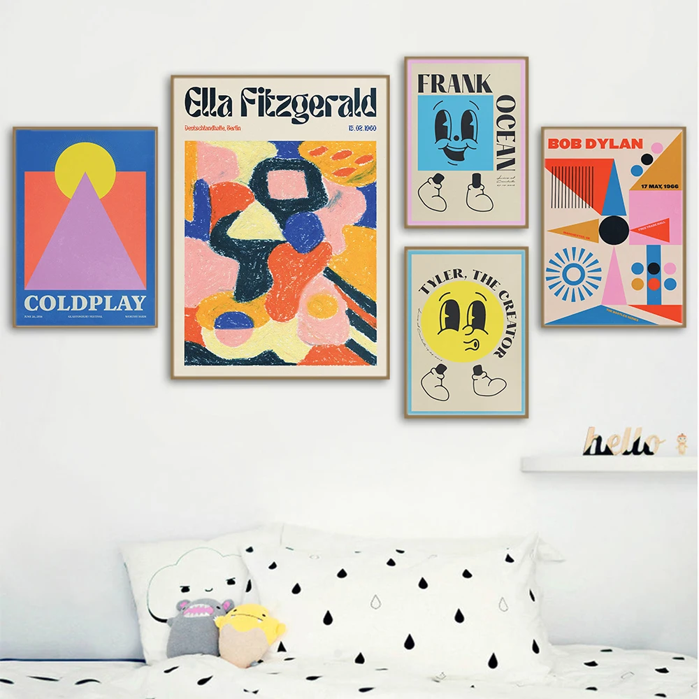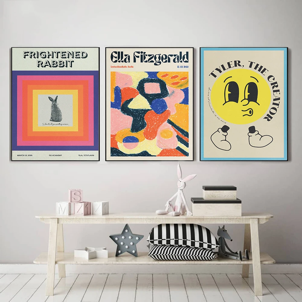 Модный Красочный Абстрактный художественный постер с мультяшным ков...