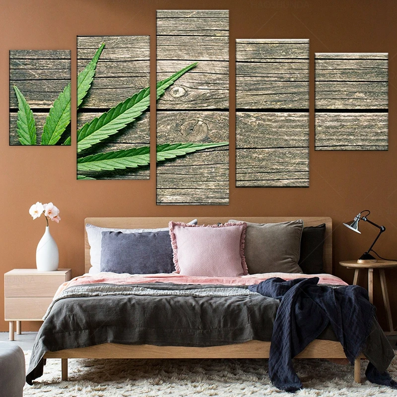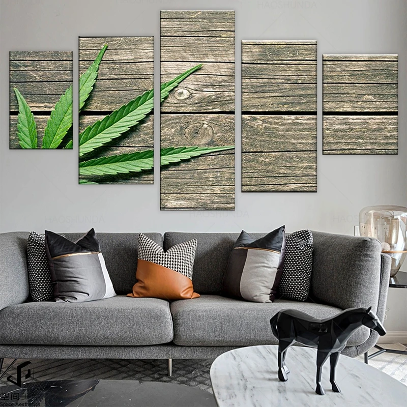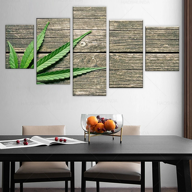 HD-Картина на холсте для гостиной, современная живопись, 5 панелей, трава, деревянная доска, Модульная картина, настенное искусство, украшение для дома, плакаты, рамка