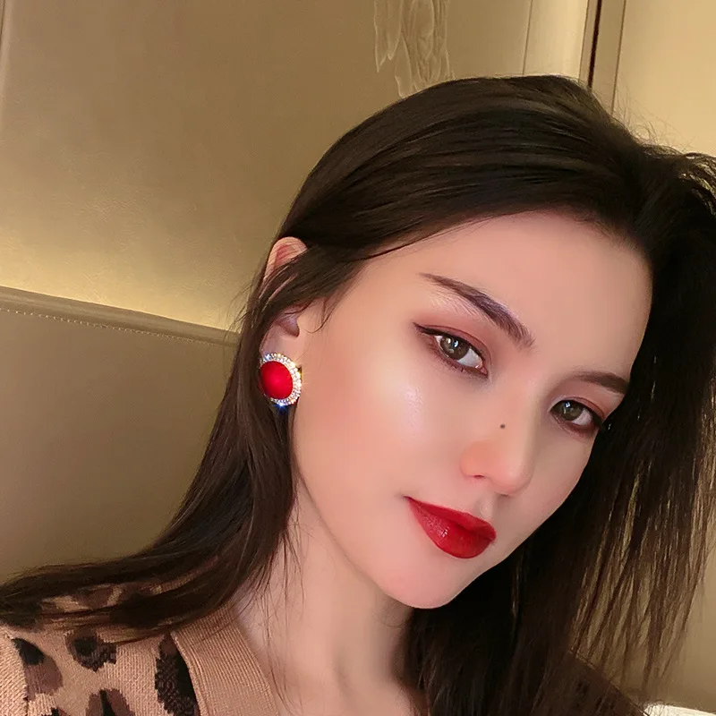 Элегантные геометрические серьги-гвоздики красного цвета с шариком, бантом, сердцем и кристаллами из циркония для женщин и девушек, модные украшения для вечерние Ринок и свадеб, подарок