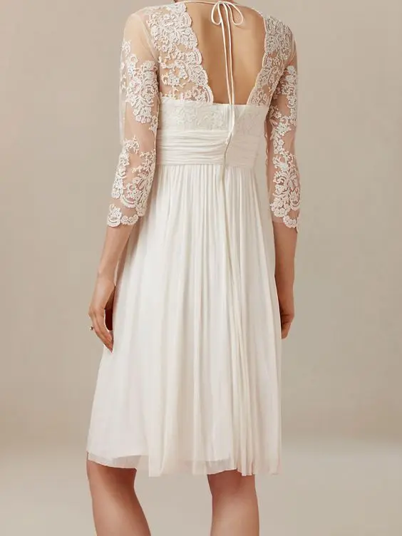 Женское свадебное платье до колен, белое платье цвета слоновой кости с V-образным вырезом и длинными рукавами, кружевное платье в стиле бохо, 2021