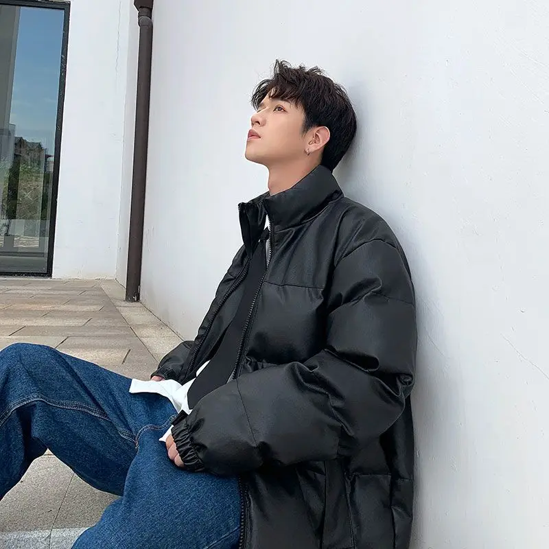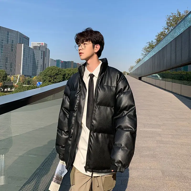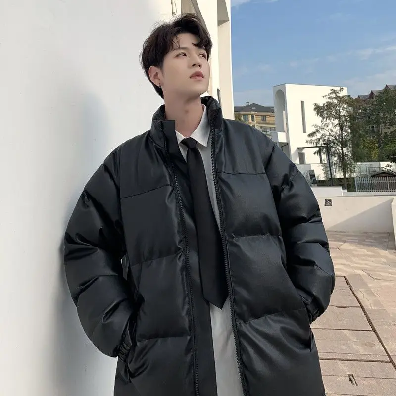 Винтажная однотонная хлопковая куртка, мужское короткое пальто, Осень-зима 2022, новая корейская мода, в стиле преппи, короткая кожаная пуховая куртка из хлопка