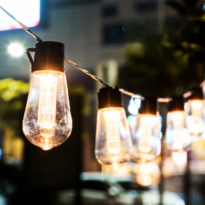 Наши коммерческие светильники являются идеальным украшением для балкона, террасы, сада, бистро, беседки, палатки, барбекю, городской крыши, рынка, кафе, зонта, ужина, свадьбы, дня рождения, вечерние и т. Д. Для замены ламп.