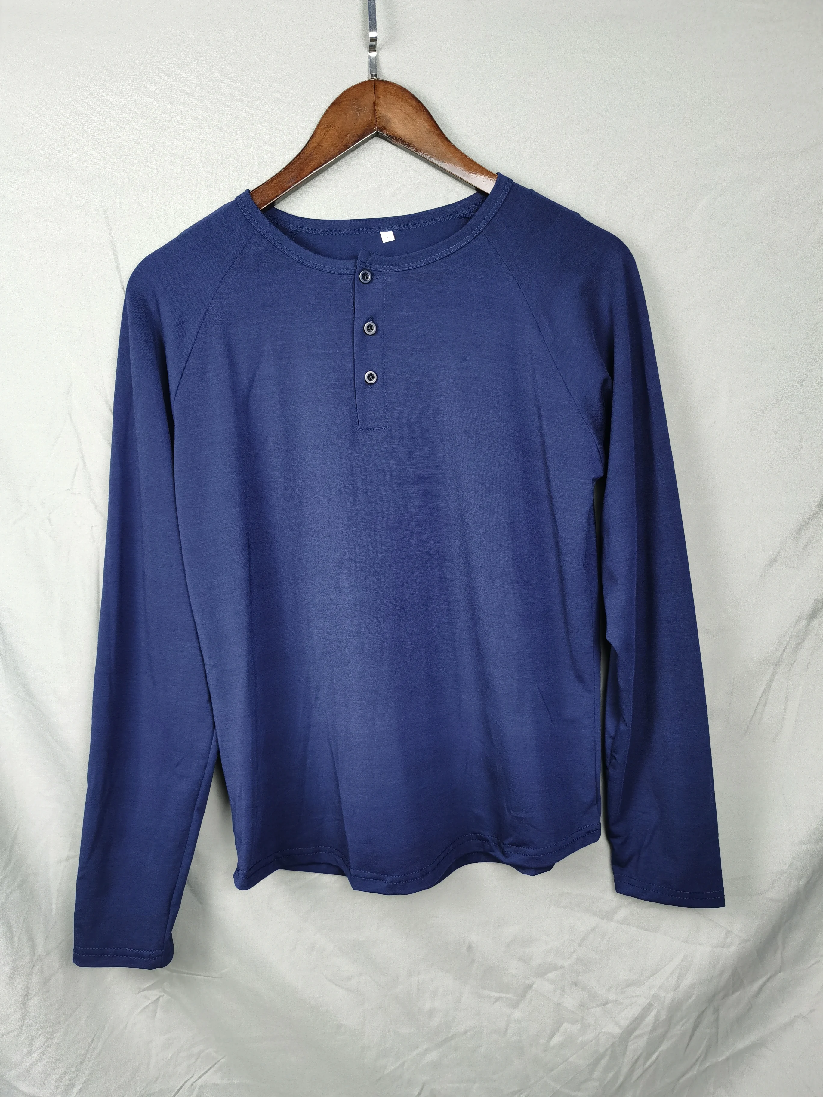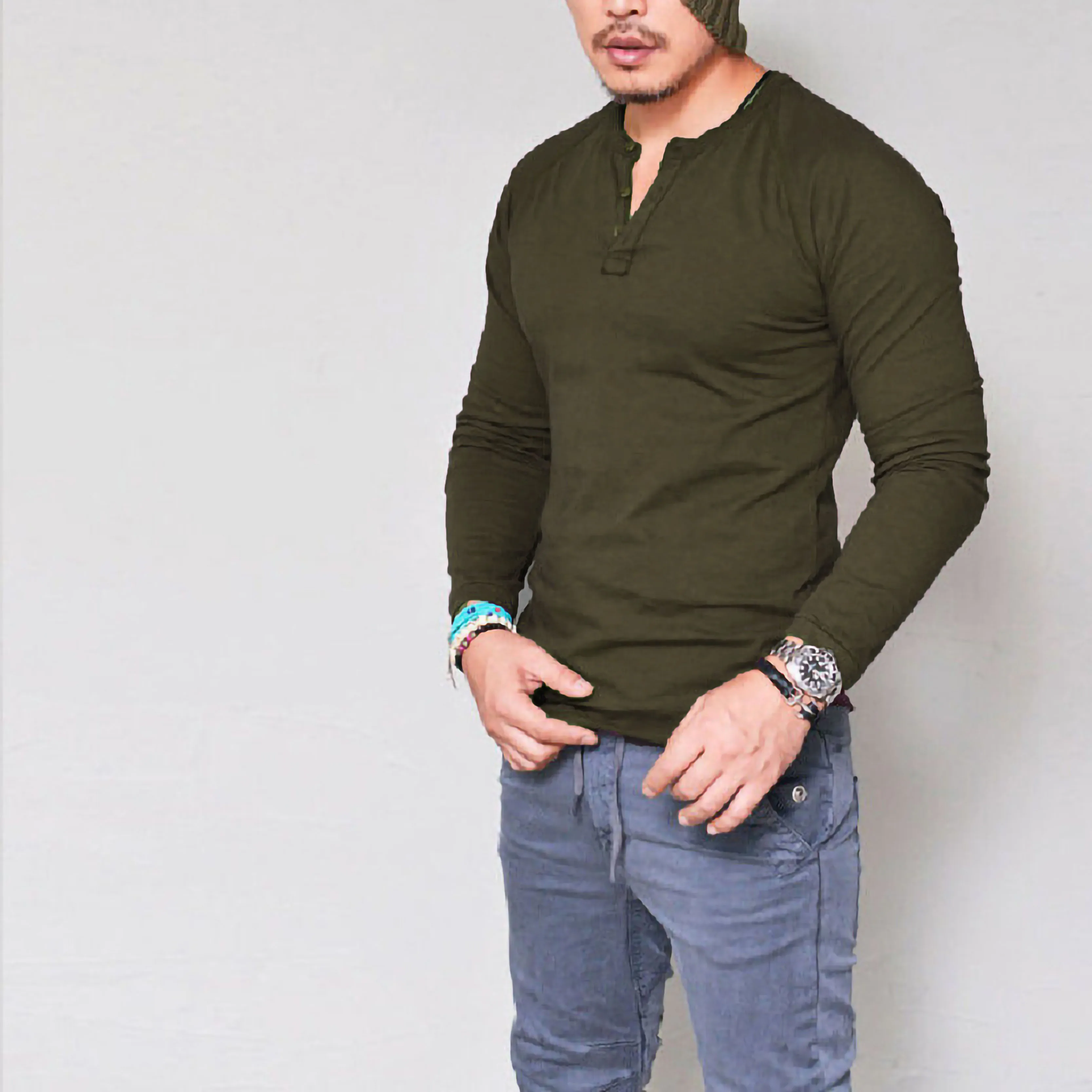 Футболка мужская Хенли с длинным рукавом, застежка на пуговицах, По...