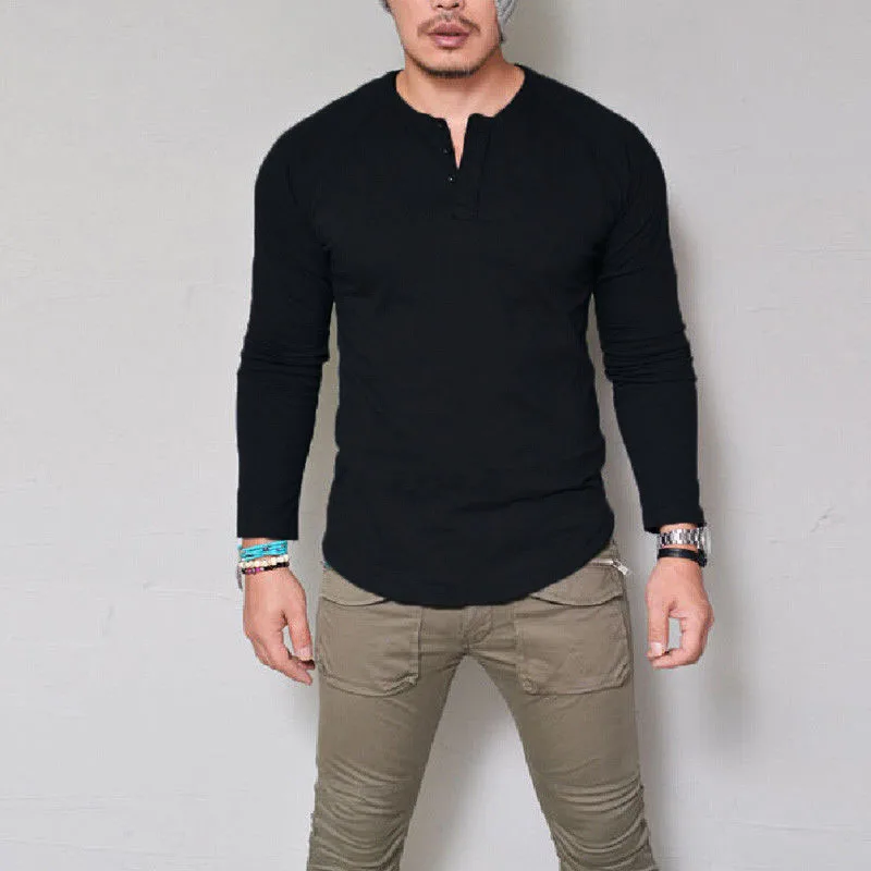 Прямая поставка, Мужская футболка 2021, Повседневная футболка с длинным рукавом, модная облегающая Мужская футболка на пуговицах, Мужской базовый топ, футболка