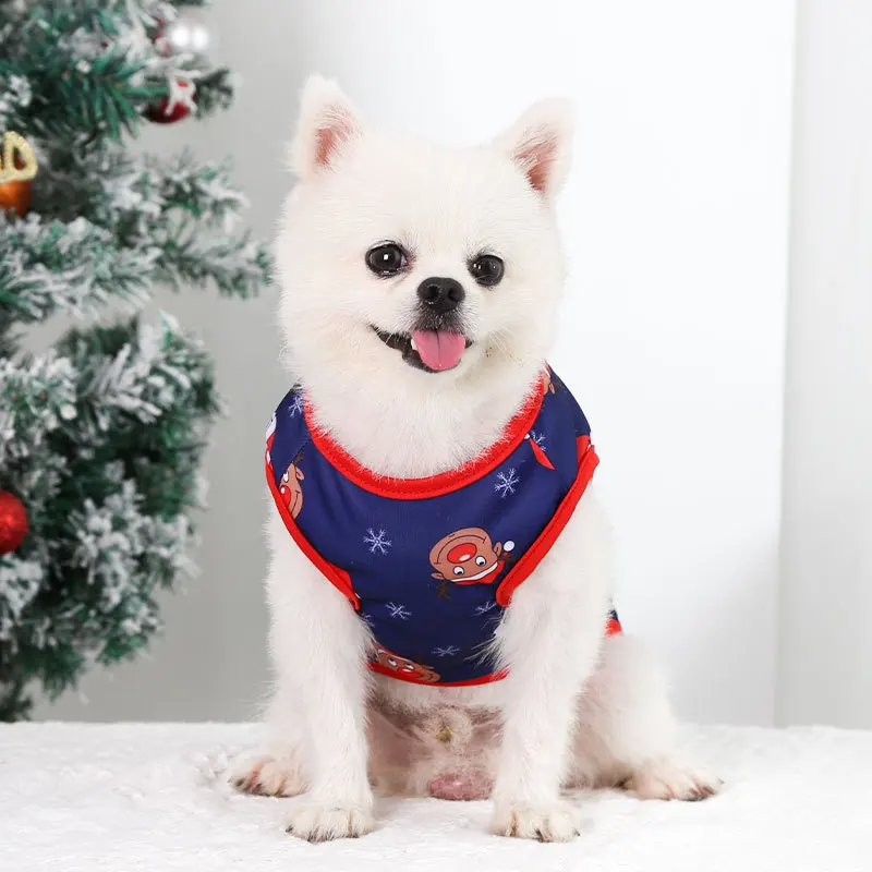 Рождественский стиль, одежда для собак, жилетка для домашних животных, без рукавов, с принтом деда мороза, снежинок, жилетка для маленьких собак, костюм для щенка чихуахуа