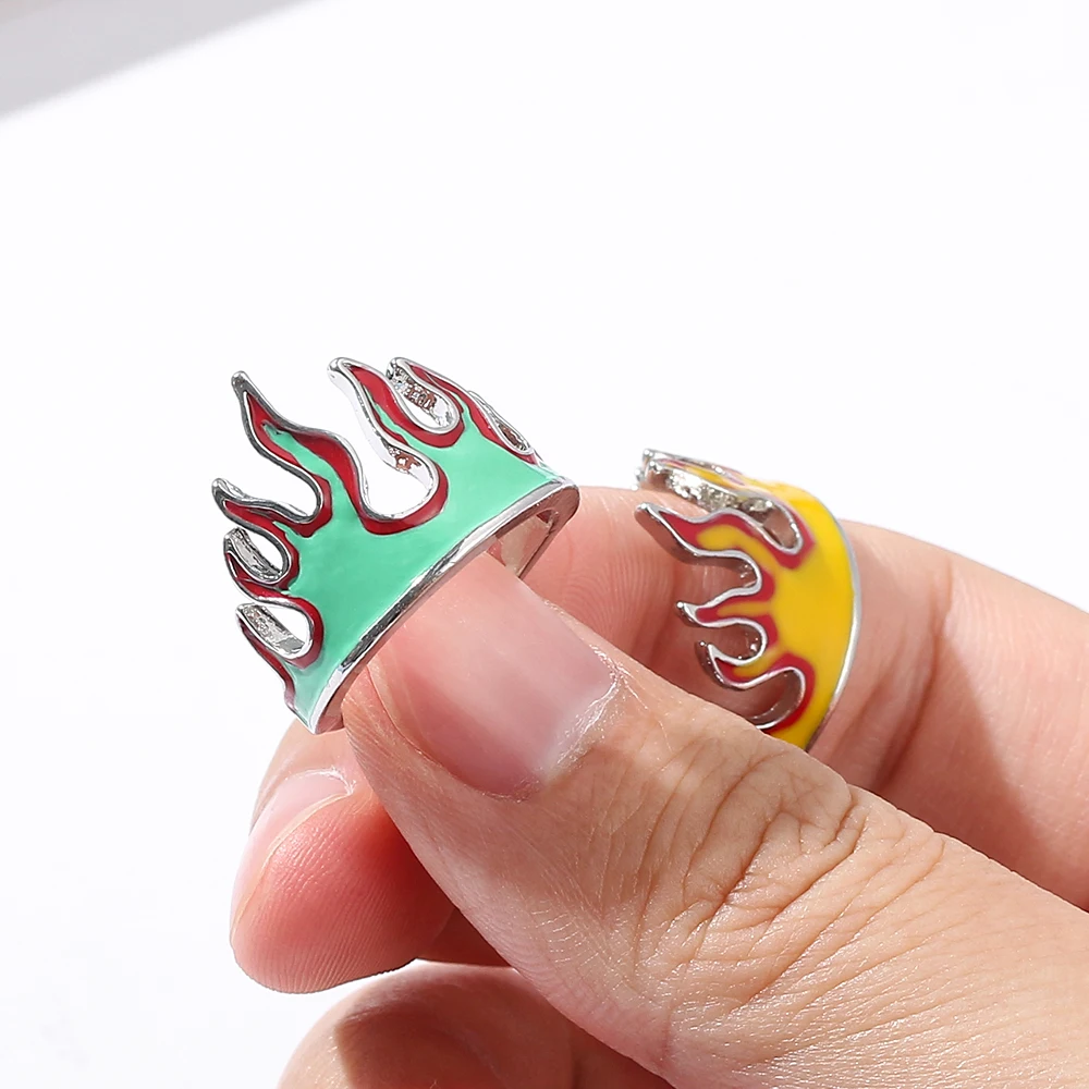 Регулируемое металлическое кольцо в стиле хип-хоп, Креативные аксессуары в стиле аниме, рассекающее демонов, панк, готическое пламя, в стиле рок