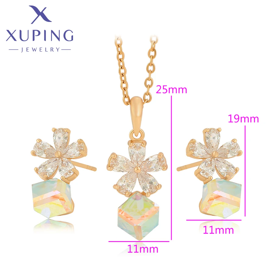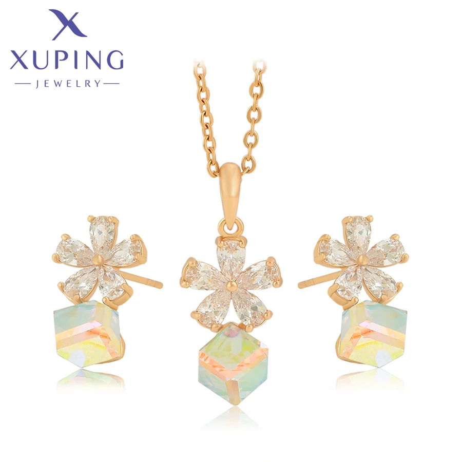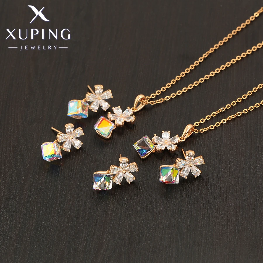 Xuping ювелирные изделия Новое поступление Набор квадратных кристаллов серьги и ожерелье для женщин роскошный подарок для вечеринки девушки A006277846