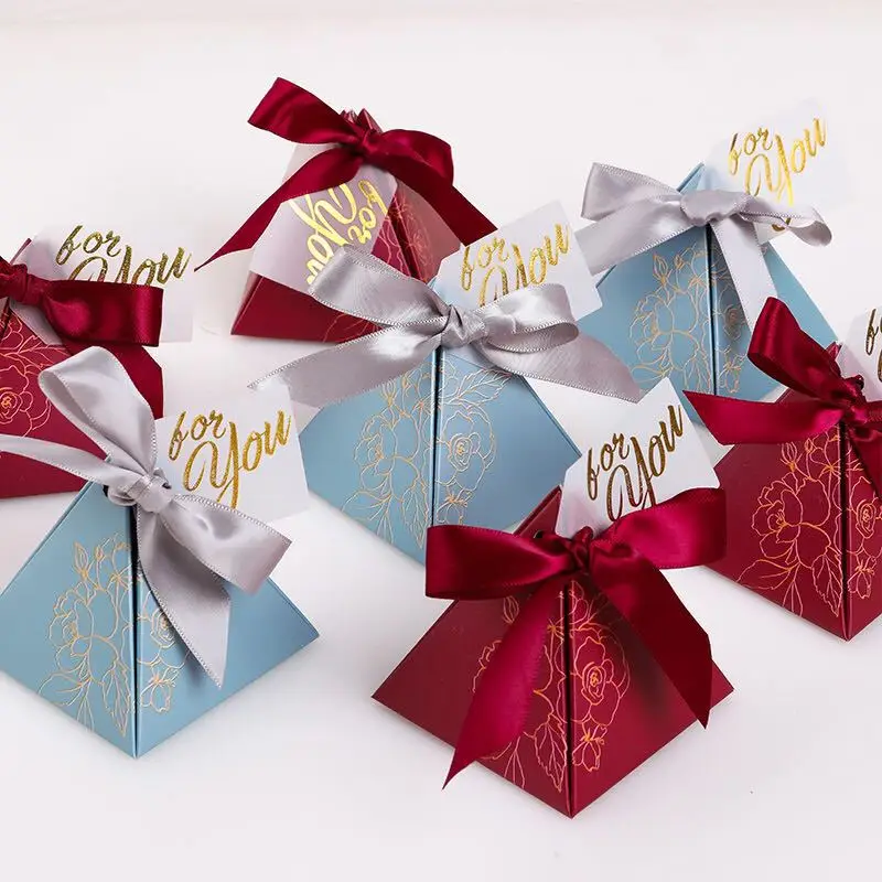 Треугольная коробка для конфет в виде пирамиды, свадебные сувениры и Подарочная коробка, бумажная коробка, упаковка для свадебного украшения, товары для вечеринок