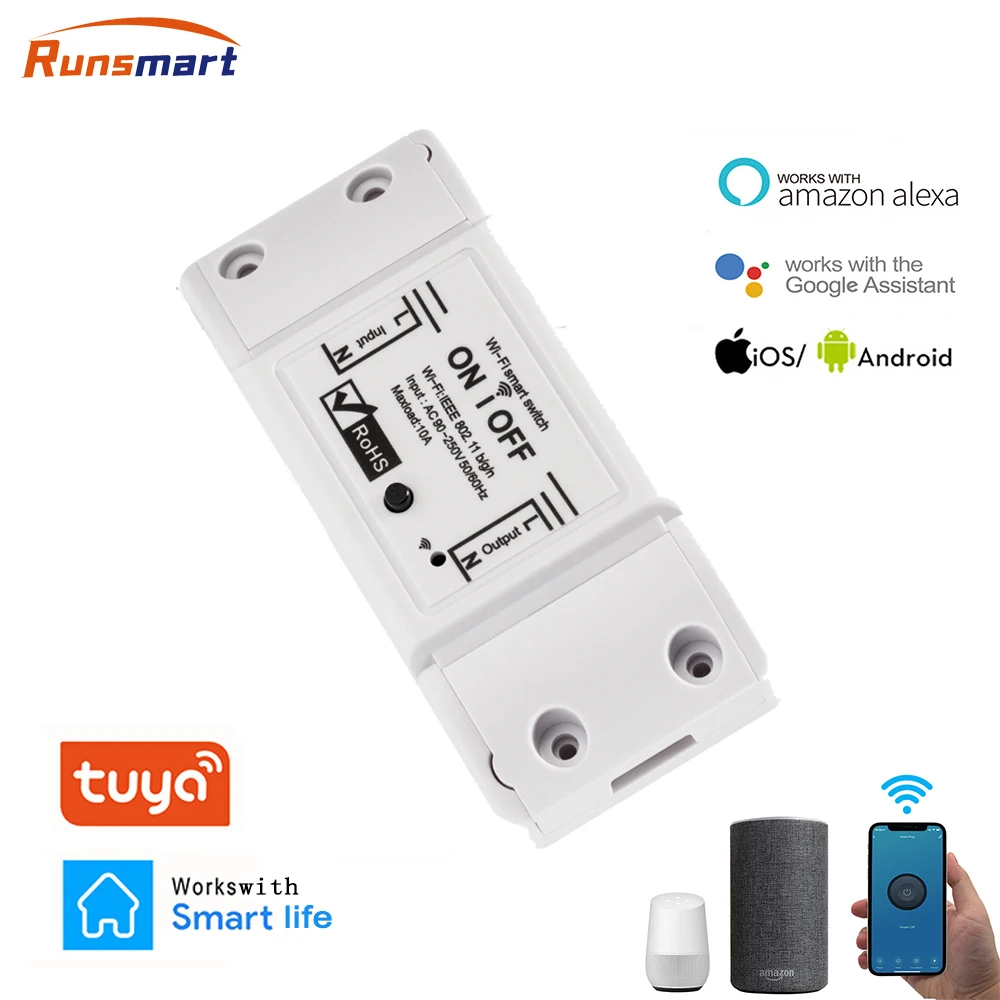 Умный выключатель RUNSMART Tuya, Беспроводной Выключатель Wi-Fi, модуль управления, пульт дистанционного управления, работает с Alexa Google Home