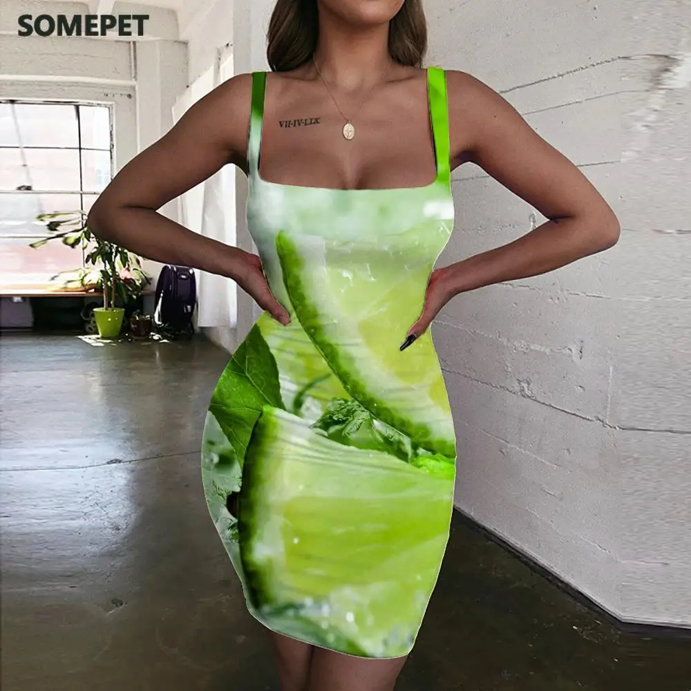 Женский сарафан в виде еды, разноцветные женские платья, крутая Жен...