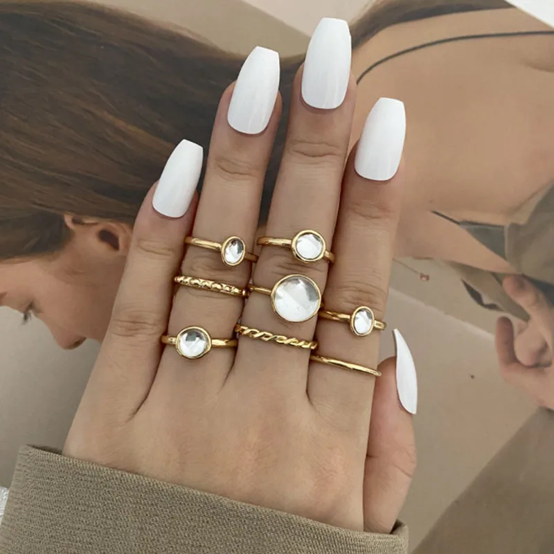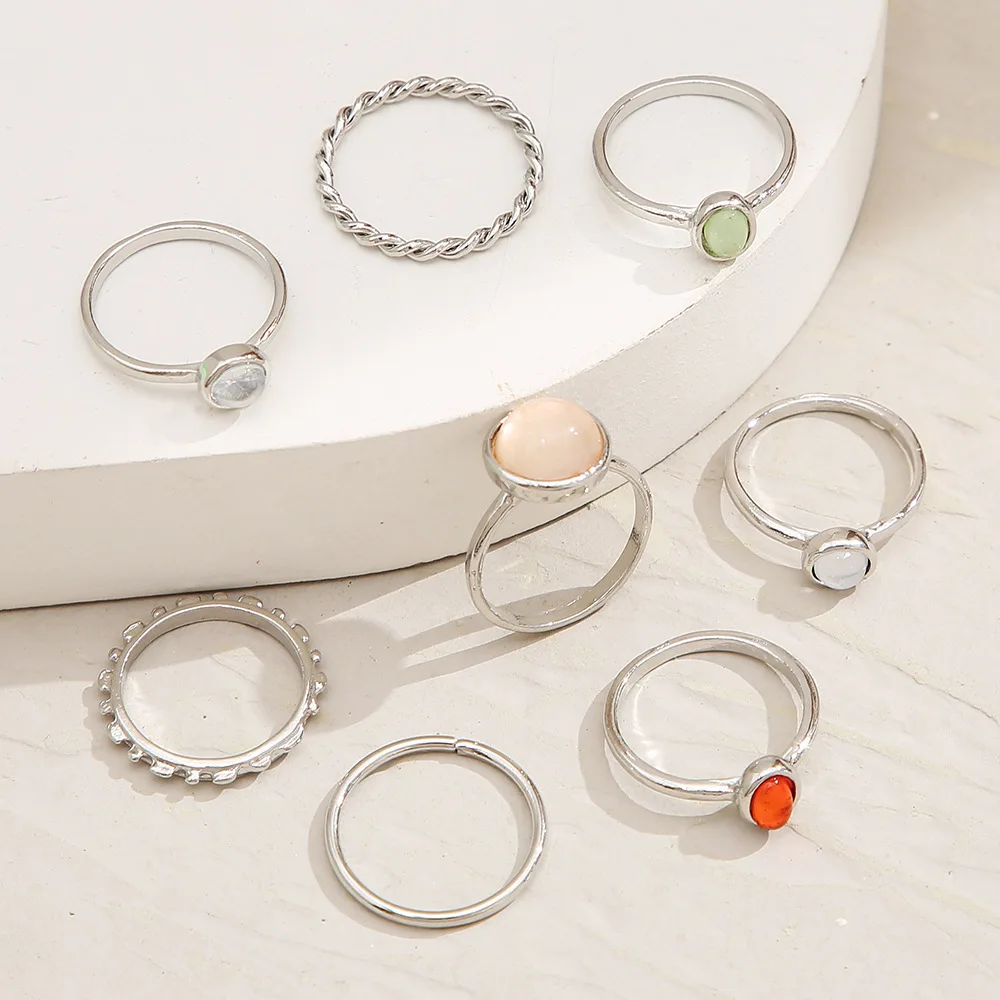 Модный набор колец 8 шт. с красочным камнем для женщин винтажные корейские золотые и серебряные геометрические кольца женские ювелирные изделия для вечерние Ринок и свадеб