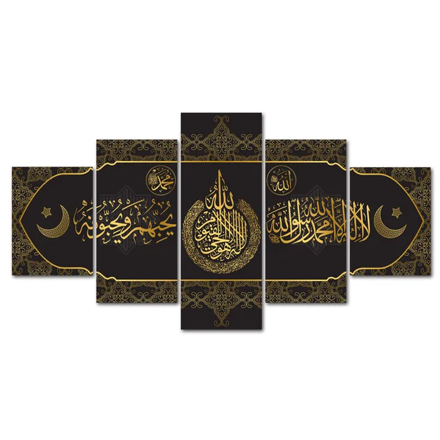 Холст в рамке, 5 шт., ислам, ic, мусульманский Золотой Коран, ислам, настенные плакаты, домашний декор, картины для украшения гостиной