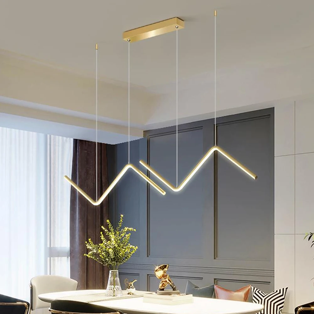 SANDIY современные светодиодные длинные подвесные светильники для обеденного стола минималистичный подвесной светильник Лофт стиль простые люстры домашний декор Блеск