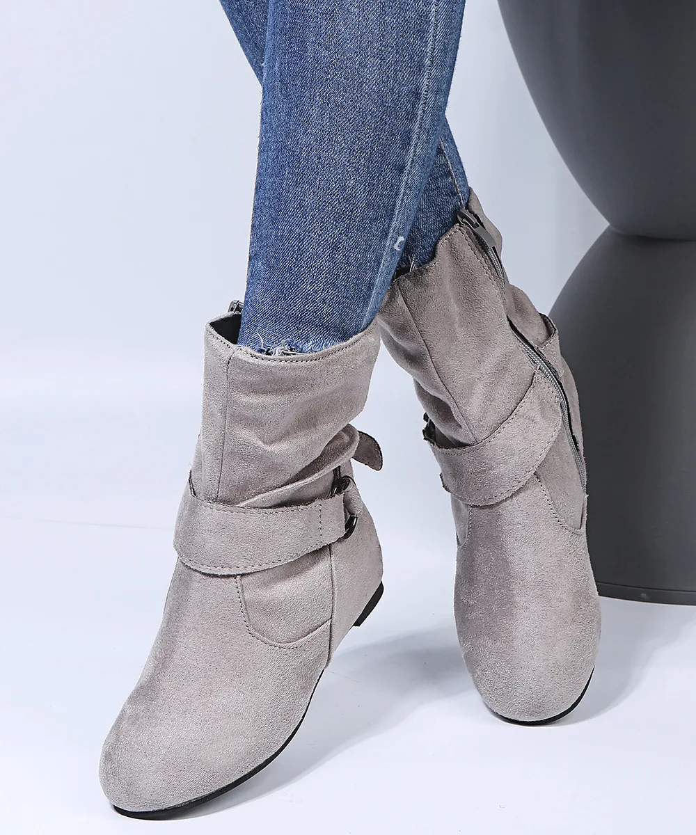 Женские сапоги на плоской подошве, демисезонные теплые сапоги в стиле ретро с пряжкой, с закрытым носком, большие размеры 35-43, повседневные сапоги до середины икры