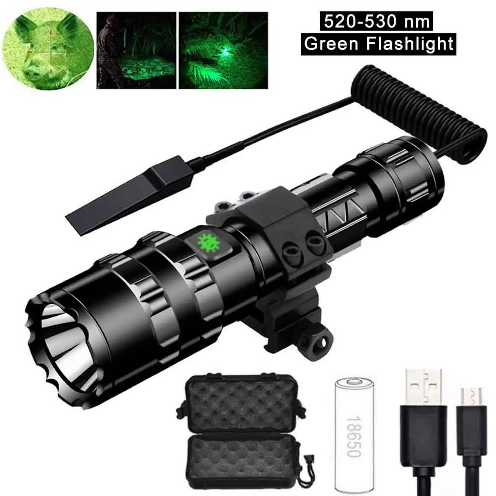Тактический фонарик для Пикатинни 20 мм, диапазон 500 м, USB Водонепроницаемый светодиодный мощный фонарь, ночник для охоты, стрельбы, кемпинга