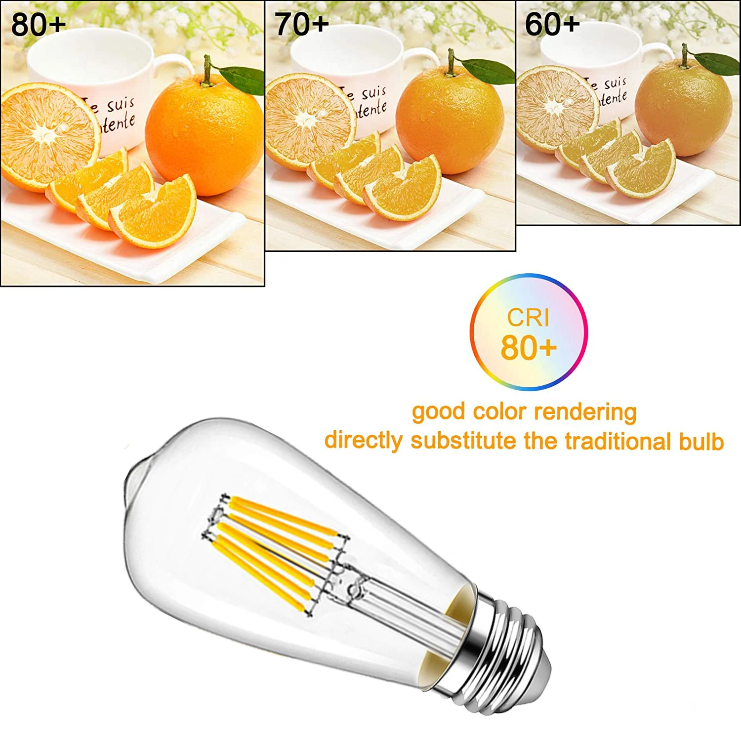 Высокая эффективность и энергосбережение: По сравнению с лампами, наши 6W светодиодный лампы Эдисона могут заменить лампы 60W, экономя до 90% затрат на энергию и электричество и уменьшая частоту замены.