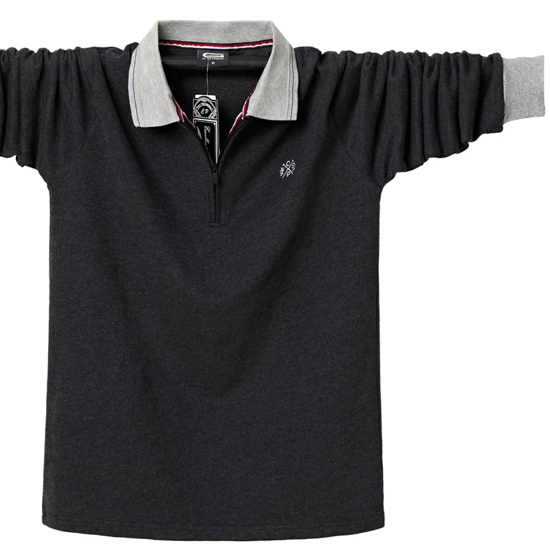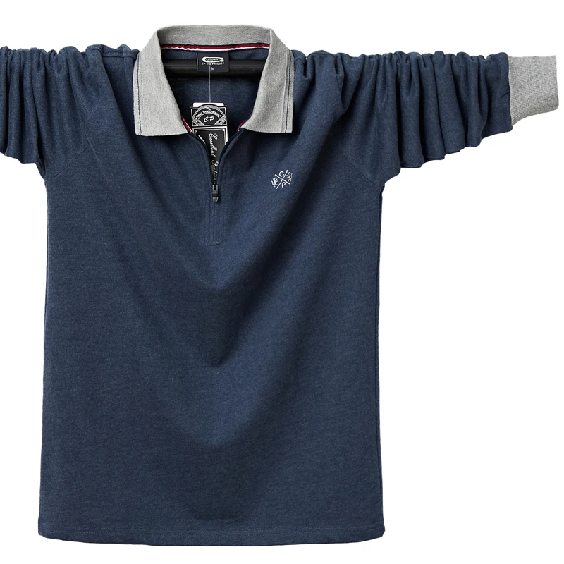 Размера плюс 6XL-L 2021, Мужская Однотонная рубашка-поло с длинным ...