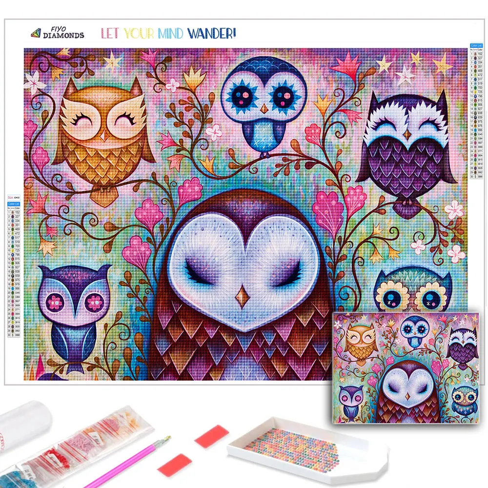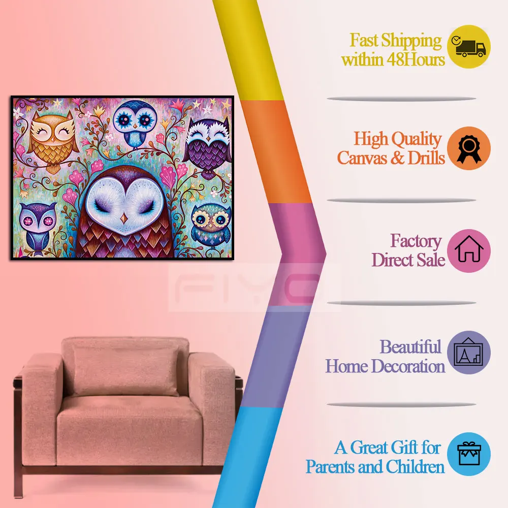 【Площадь сверла】:Полностью квадратная/круглая бриллиантовая мозаичная фигурка животного совы