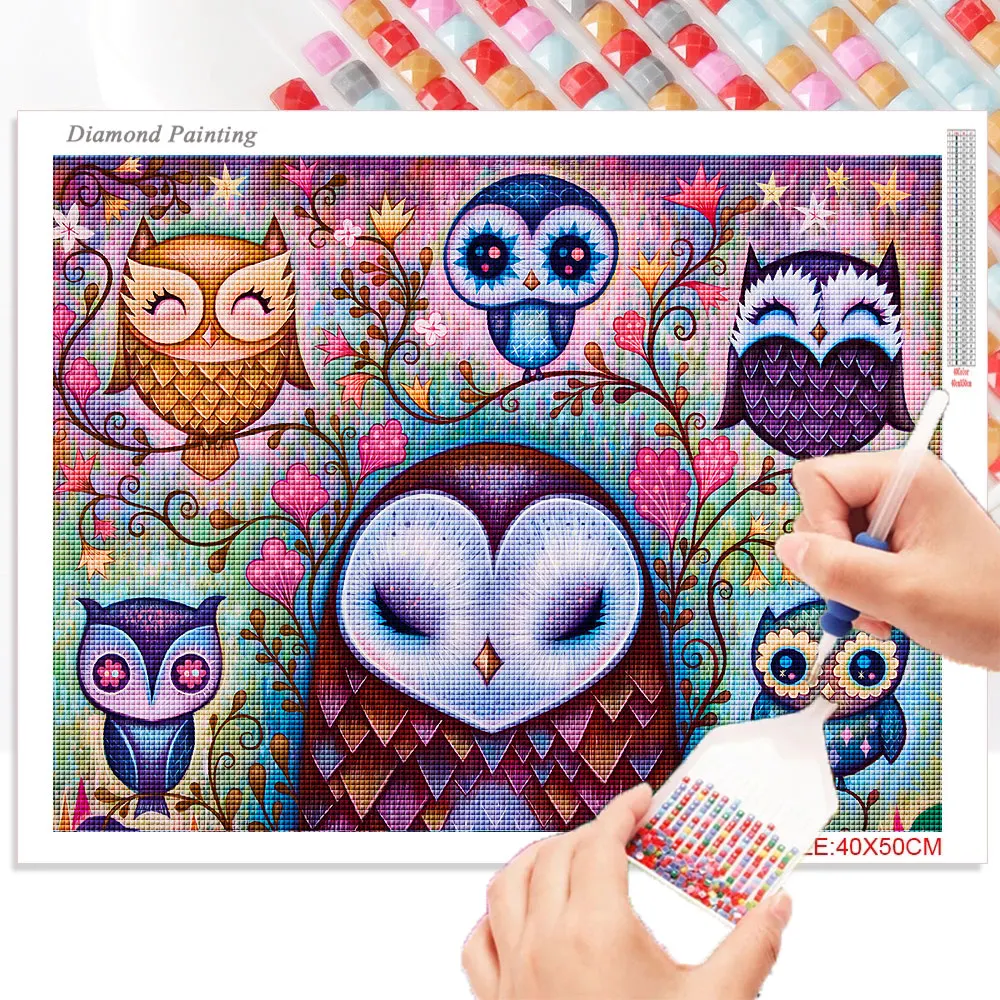 Алмазная живопись 5D "сделай сам", мультяшная сова, картина стразы, Алмазная мозаика, животное, птица, вышивка крестиком, набор для домашнего декора