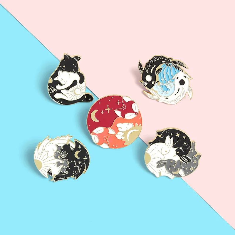 Новые эмалированные Броши Taichi с животными, два черных, белых кот...