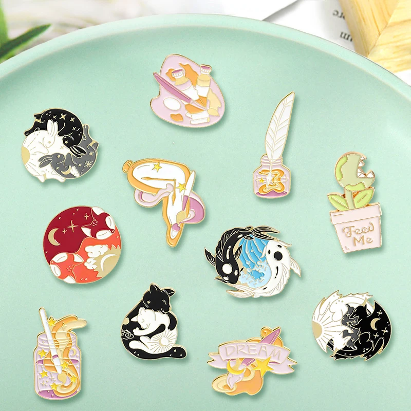 Эмалированные заколки для дня и ночи, индивидуальный значок с изобр...