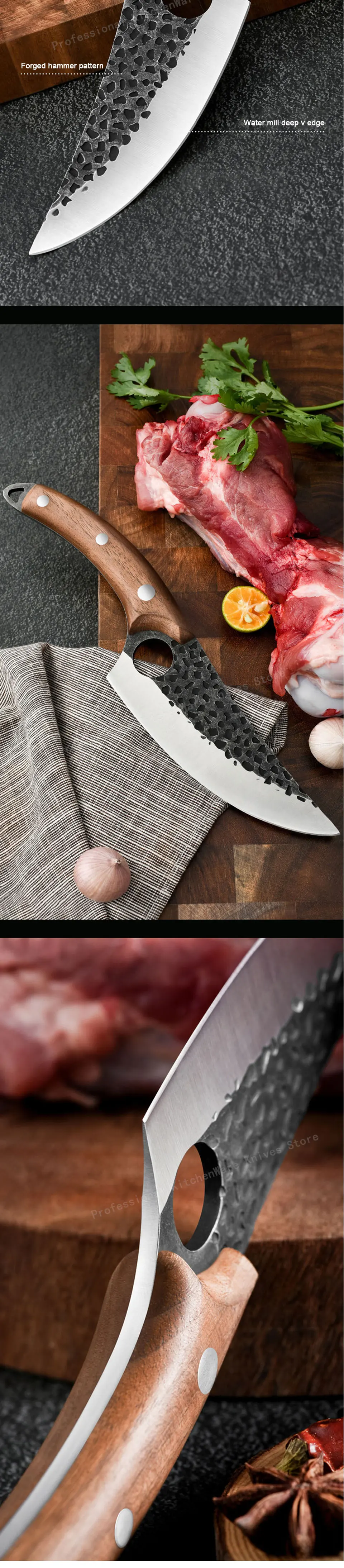 Нож ручной Кованый из нержавеющей стали, кухонный резчик мяса, нож для резки рыбы, для кемпинга, инструменты для готовки