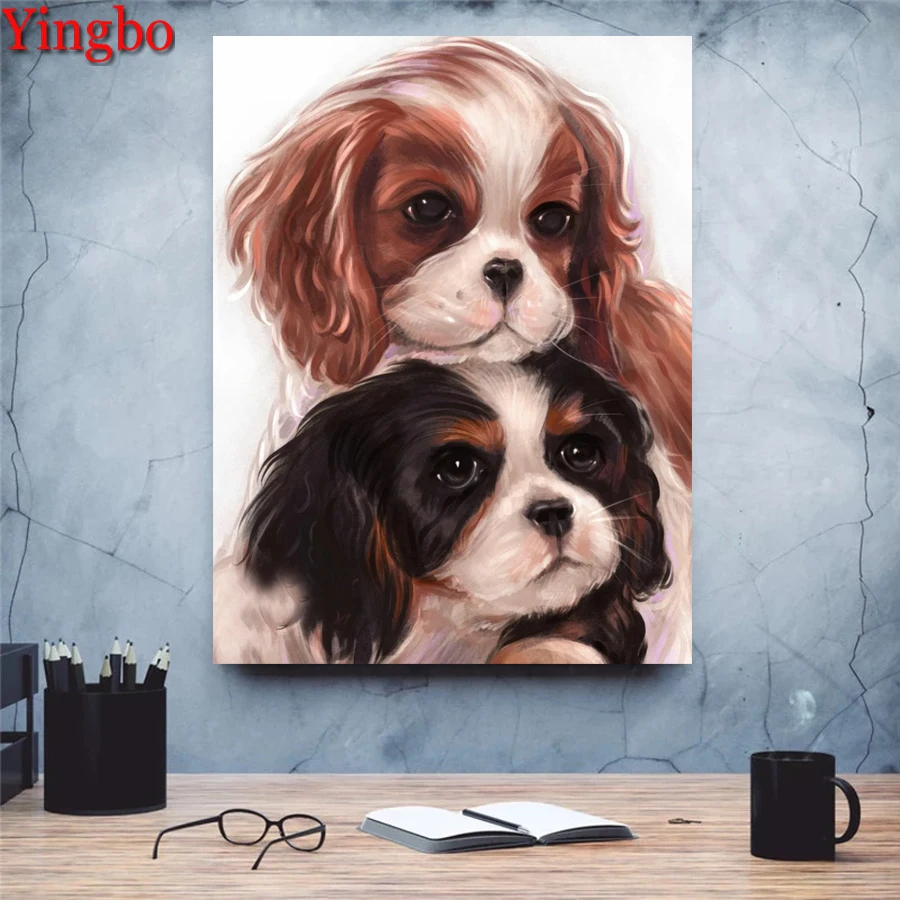 Алмазная вышивка с квадратными стразами, картина 5D с изображением животных стразы, декор мозаики, карлез спаниель