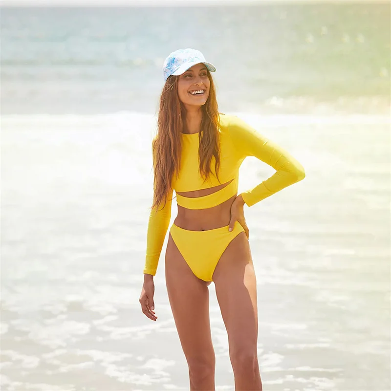 Женский купальник для серфинга, бикини с длинным рукавом, однотонные топы с пуш-ап, летний купальный костюм, бикини из двух предметов, 2021