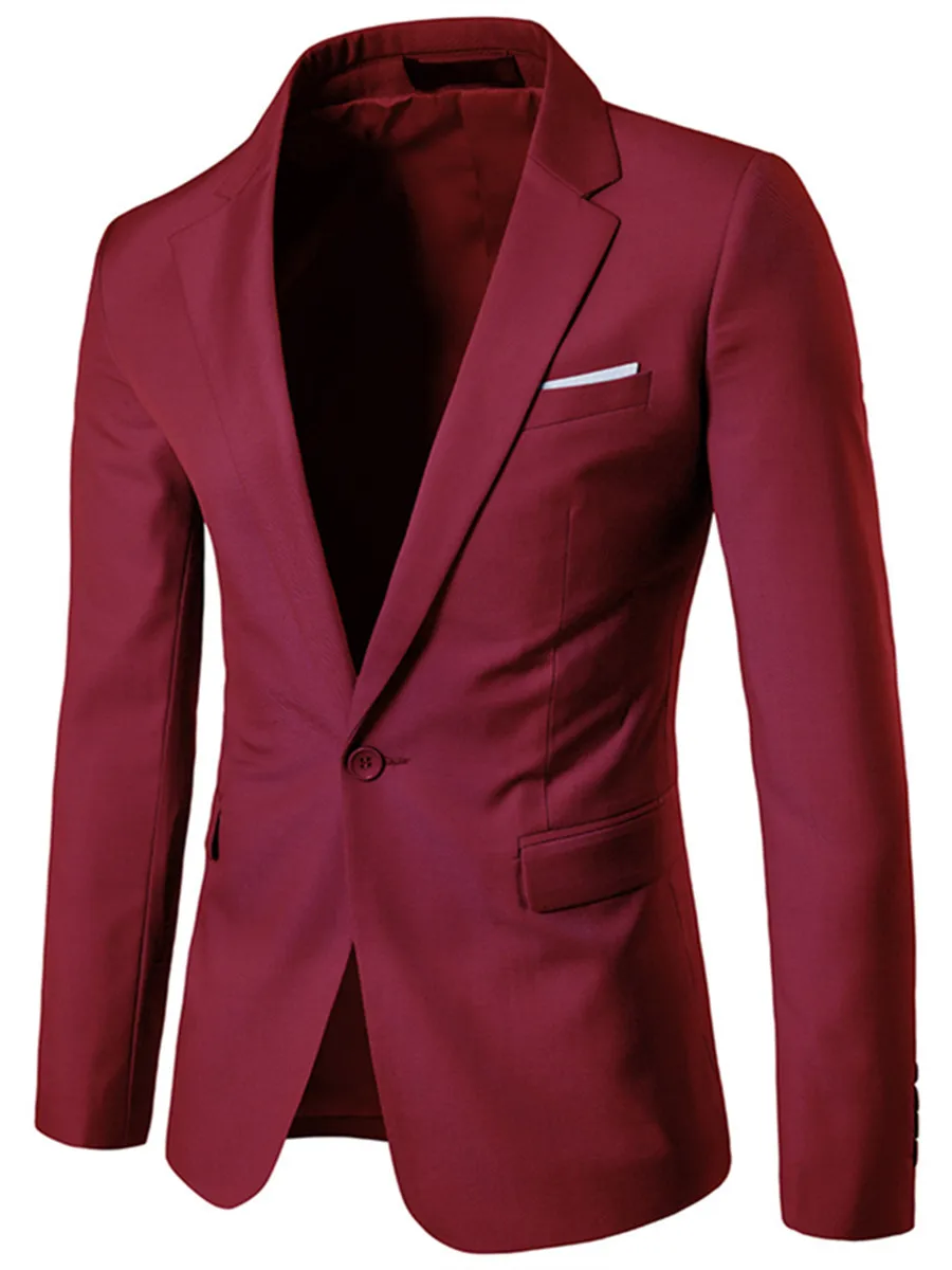 Бордовый Мужской Блейзер, приталенный мужской однотонный костюм для отдыха, Молодежный маленький костюм, однотонное Свободное пальто, трендовый пиджак