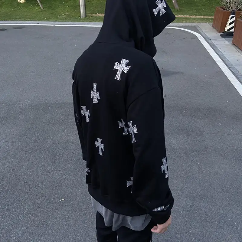 Стразы с перекрестным крестом 2021 зимняя толстовка на молнии в стиле оверсайз хип-поп женские худи гранж куртка с капюшоном мужская унисекс ретро одежда