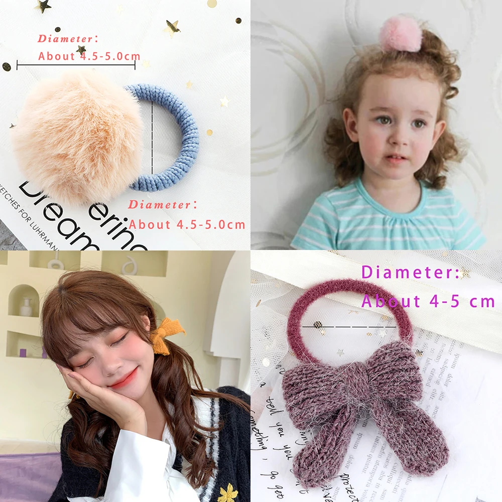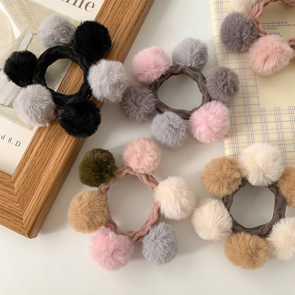 Девушки Красочные с маленькими пушистыми помпончиками для аксессуары, ленты для волос красивые меховые бантом эластичная повязка на голову для детей безопасная смешанные Цвет Pom резинки для волос
