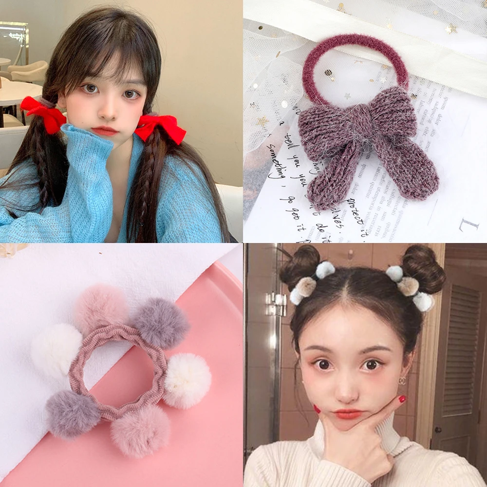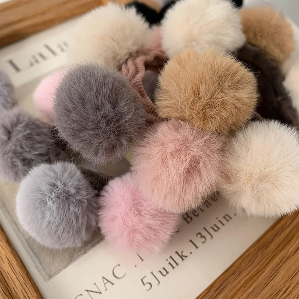 1 шт., резинки для волос с пушистыми шариками, милые мягкие резинки...
