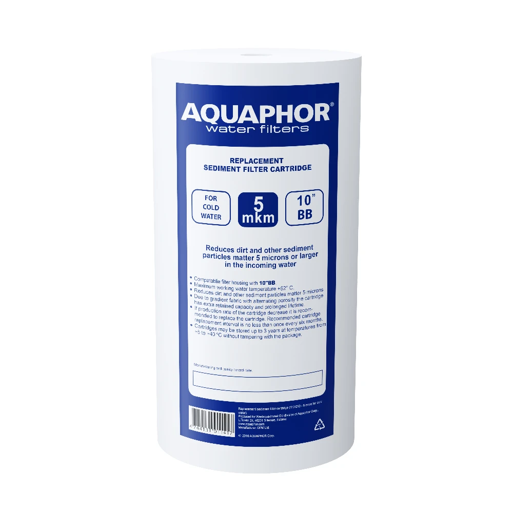 Запасной модуль для предварительной обработки холодной воды. Используется в обычных 10 корпусах предварительного фильтра, а также подходит для всех стандартных 10 корпусов фильтров BB. Изготовлен из 100% полипропилена. Градиентная структура с переменной пористостью увеличивает «грязеемкость», увеличивает ресурс.