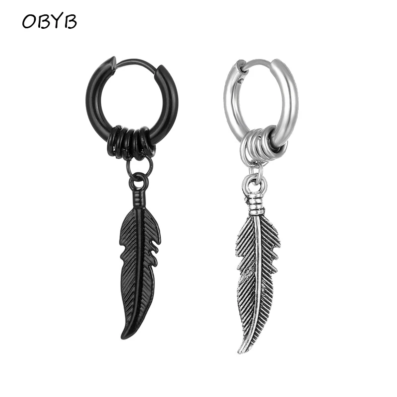 Серьги-подвески с перьями для мужчин и женщин из нержавеющей стали с круглой пряжкой в стиле панк-рок, хип-хоп, антиаллергенные серьги-кольца