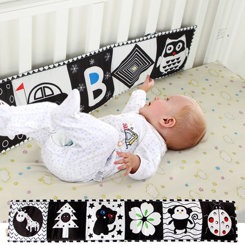 Тканевый бампер для новорожденных в кроватку чёрная белая контрастная погремушка для ранней стимуляции для детей бампер для кровати обучающие игрушки 0-12 месяцев
