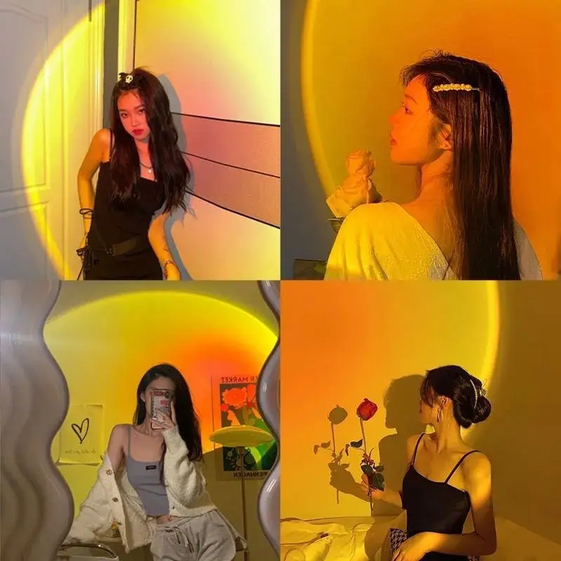 Светодиодный проекционный закат, держатель радужной атмосферы в сумерках, USB, 4 в 1, украшение для спальни, фоновая фотография, прикроватный светильник Ник