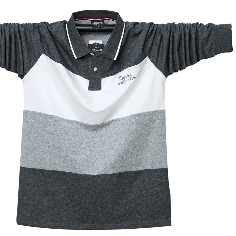 Мужская хлопковая рубашка-поло, полосатая рубашка-поло с длинным рукавом, большие размеры 6XL 5XL XXXXXL, 2021