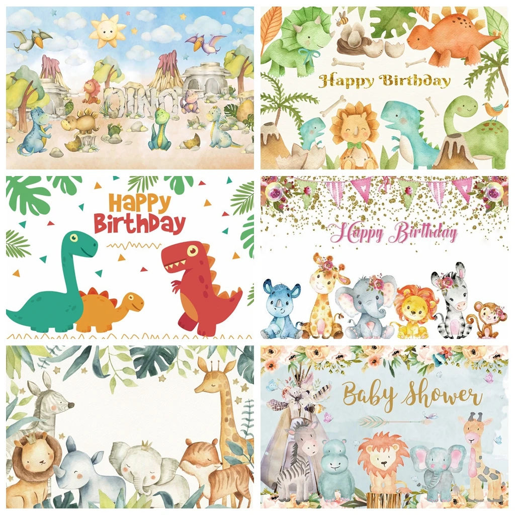 Фон для фотографирования мальчиков Laeacco с акварелью из мультфильма мир динозавров на день рождения баннер для фотостудии