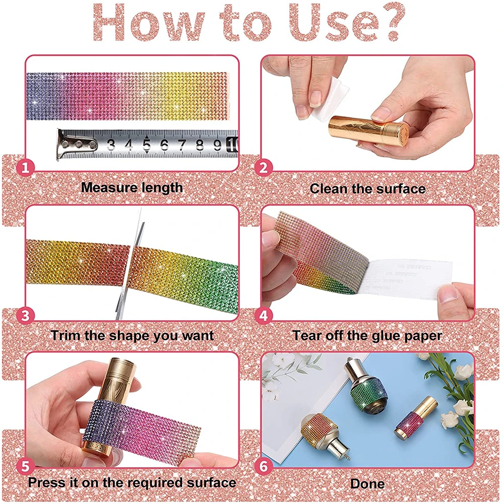 Type5Crystal Colorful Acrylic Rhinestone Roll Sticker Self-Adhesive Ribbon