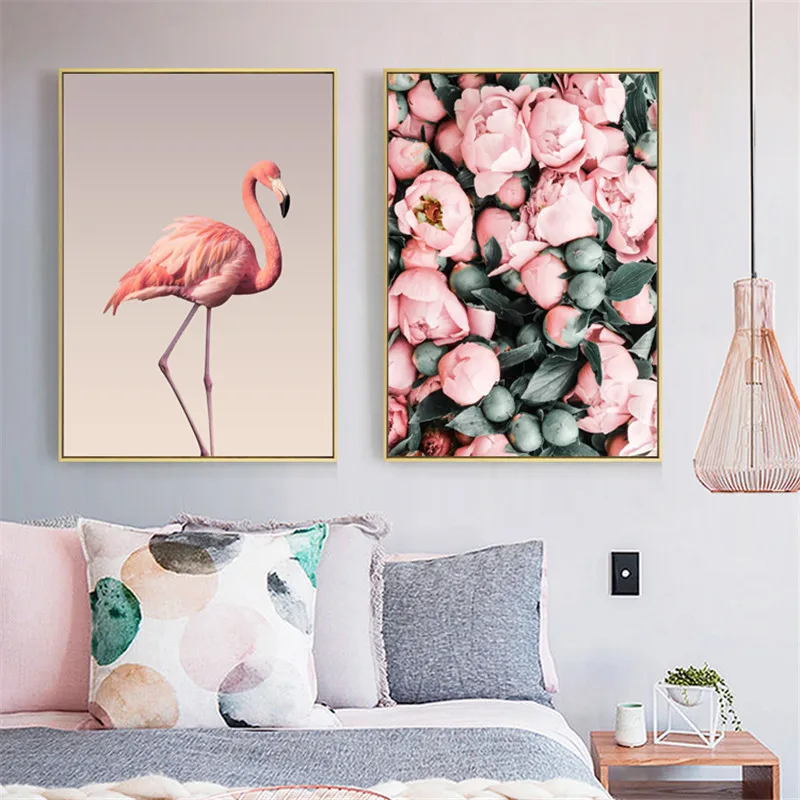 Современная Скандинавская Настенная роспись с изображением розового фламинго и цветов