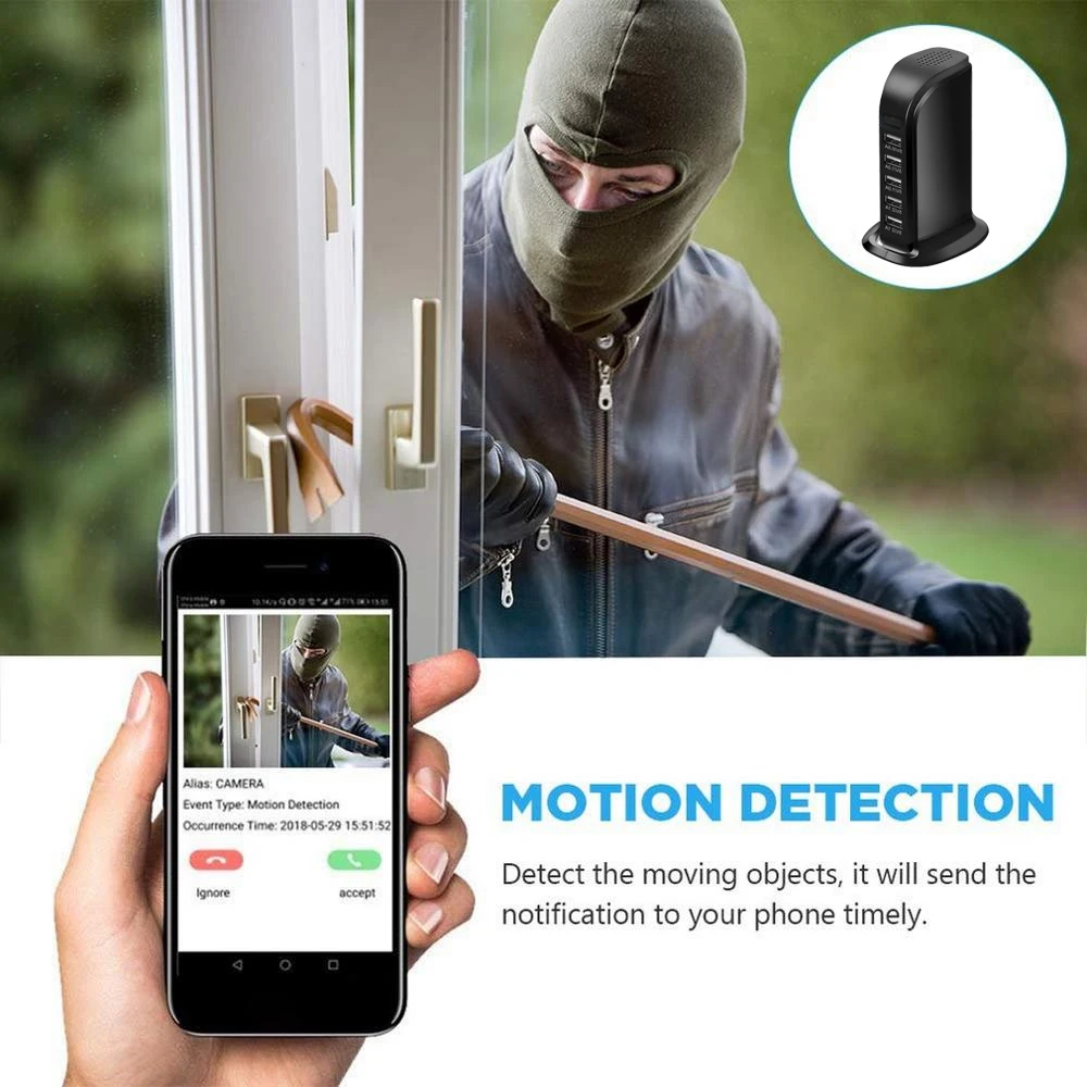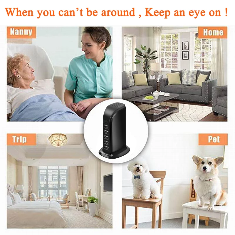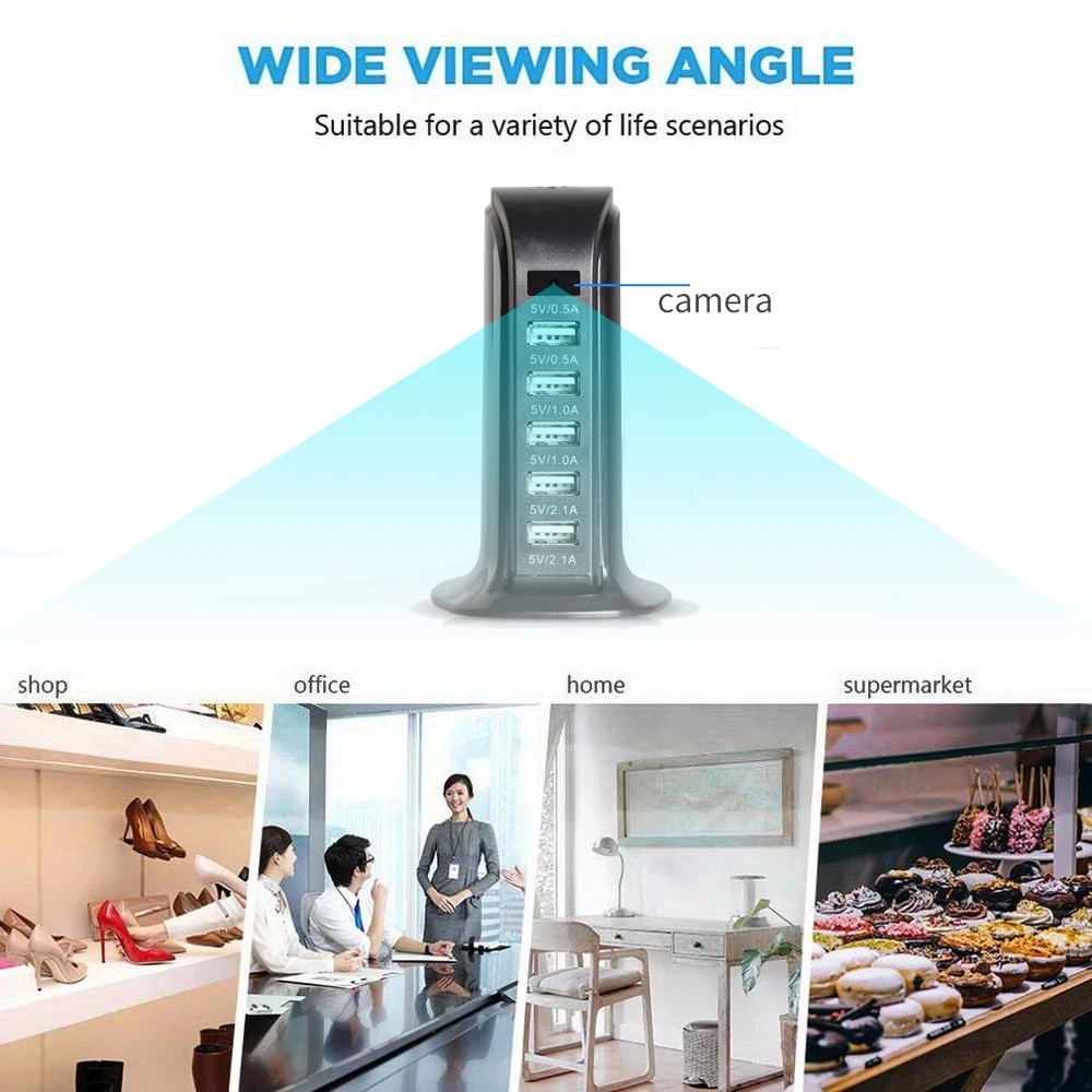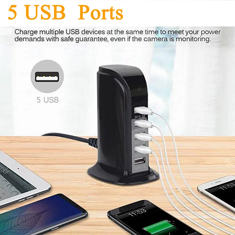 Этот продукт представляет собой Wi-Fi-зарядное устройство высокой четкости 1080P @ 25 кадров с внешней памятью для карт SD/TF. В качестве многофункциональной камеры Она объединяет камеру с записью видео, обнаружением движения, хранилищем и 5 разъемами USB, они питаются от AC100-240V.