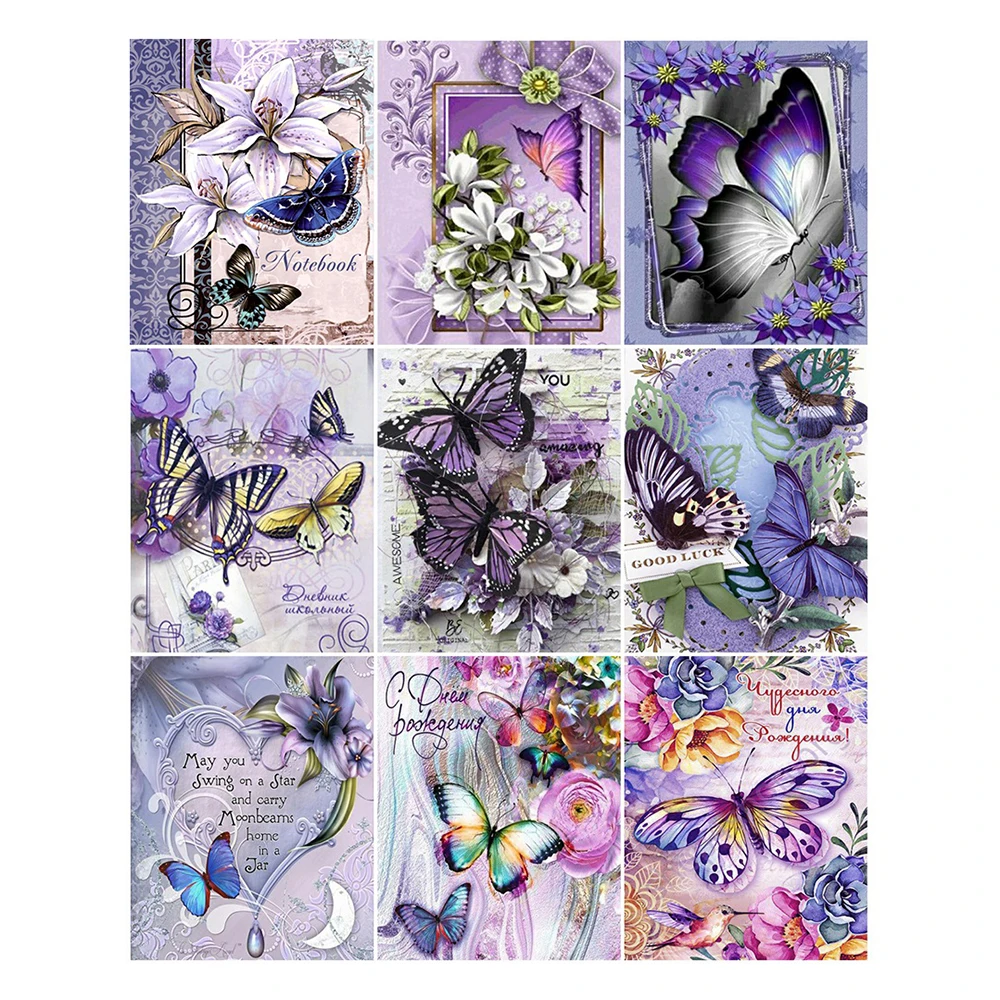HUACAN 5D алмазная картина фиолетовая сиреневая полная квадратная к...