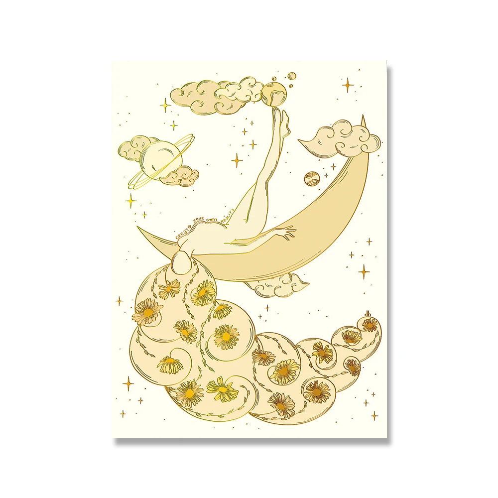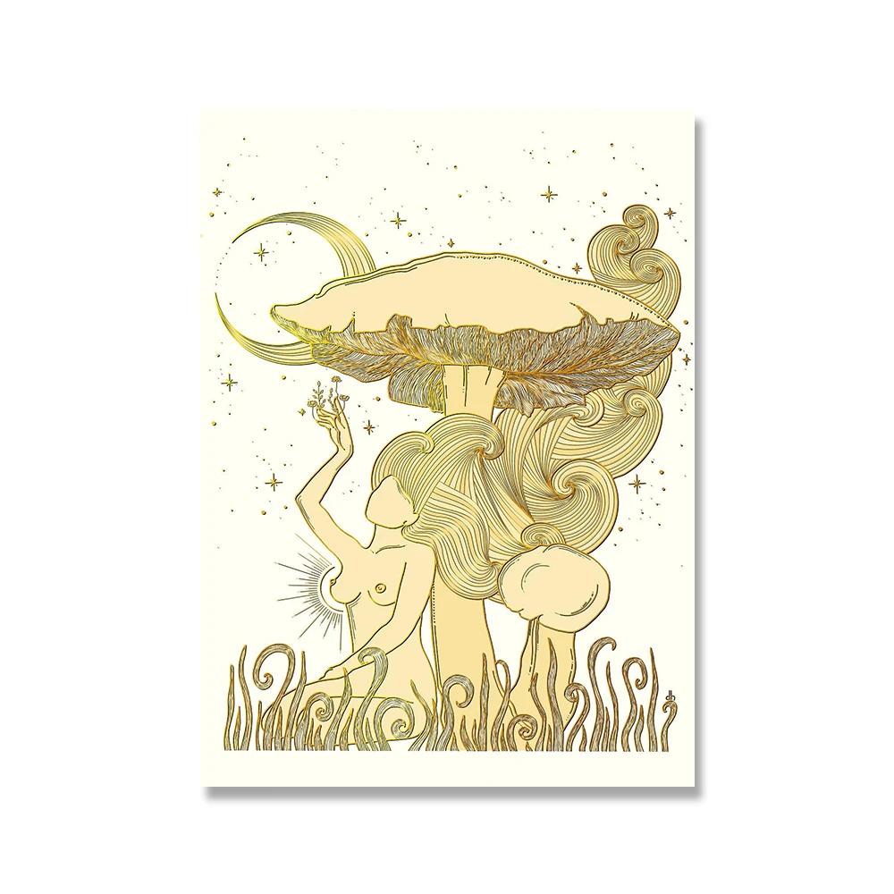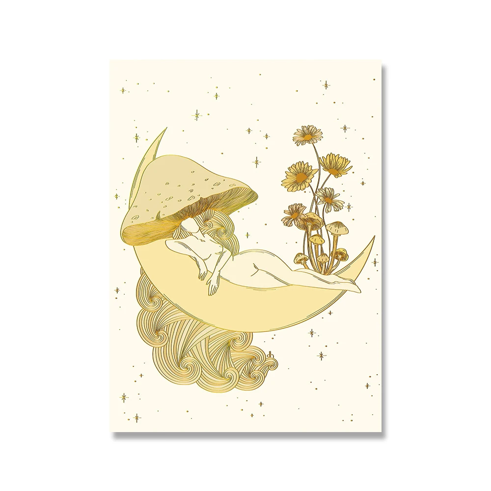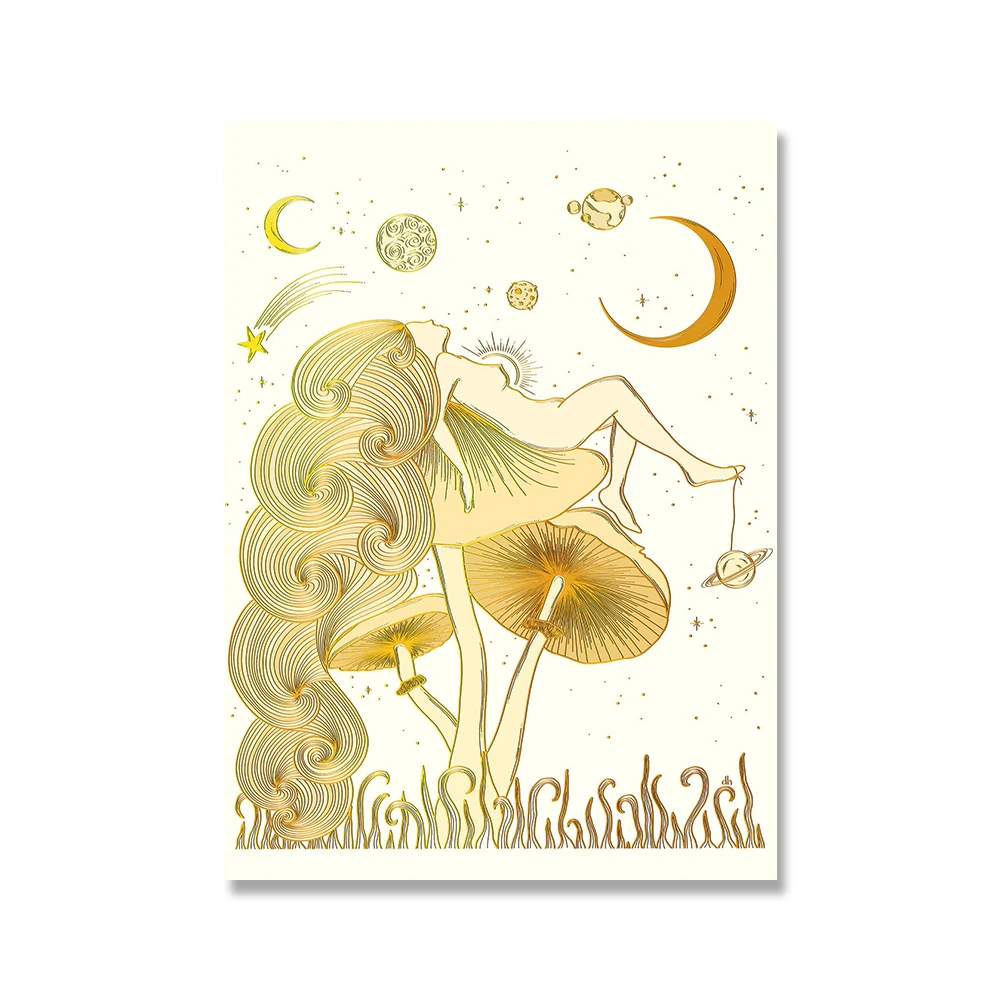 Психоделическая фотография в стиле бохо, золотая, небесная луна, женственная Картина на холсте, современные настенные картины, домашний декор для гостиной