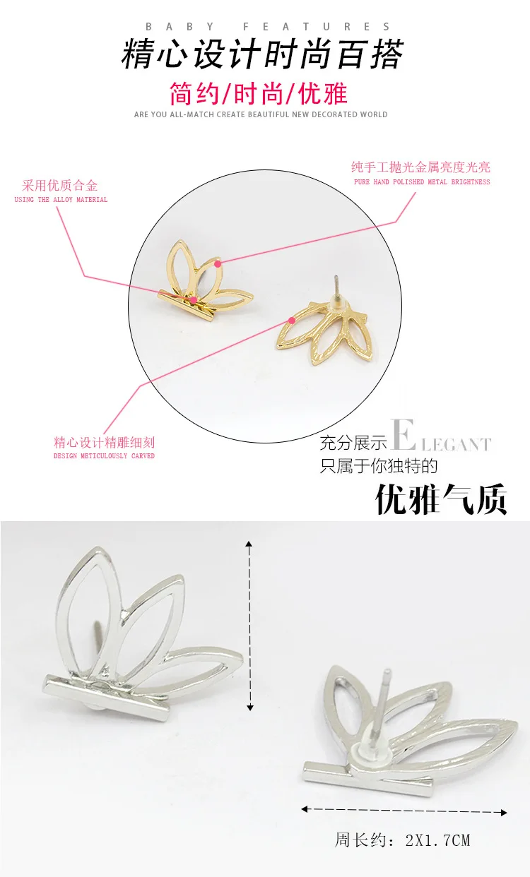 Серьги-гвоздики женские из металлического сплава, 19x15 мм, 10 шт.