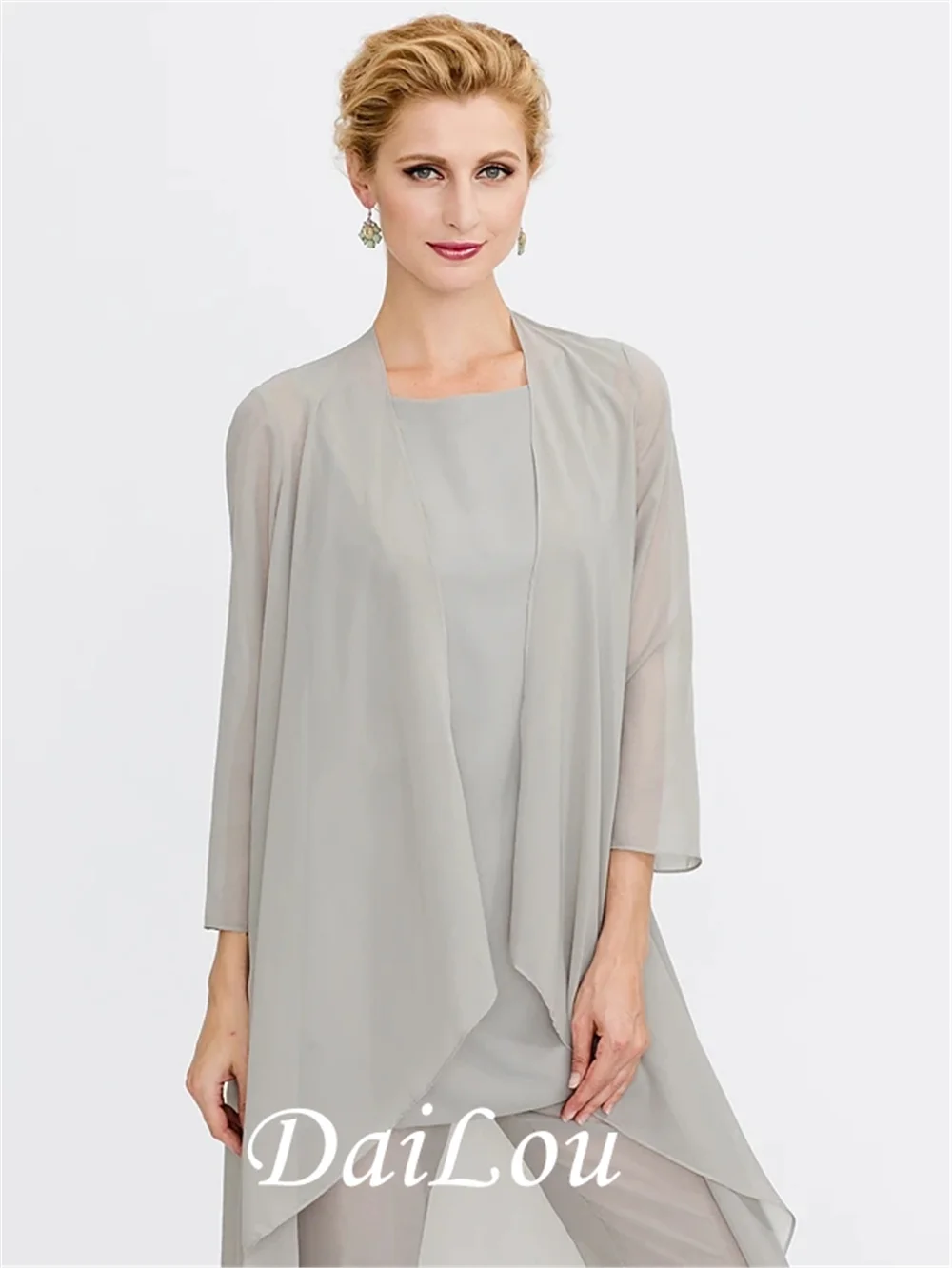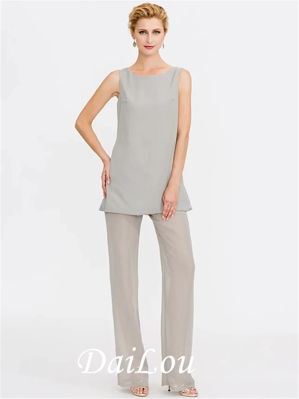 Комбинезонкомбинезон для матери невесты, шифоновый, с вырезом в пол, без рукавов, размера плюс, элегантное вырез лодочка, 2021