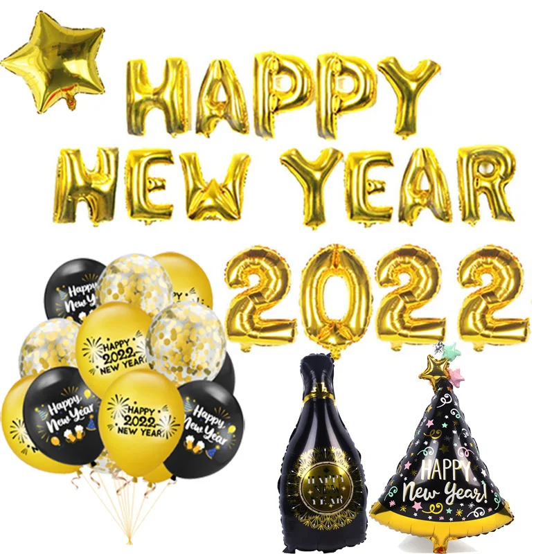 2022 С Новым годом украшения для вечеринок воздушные шары золото се...