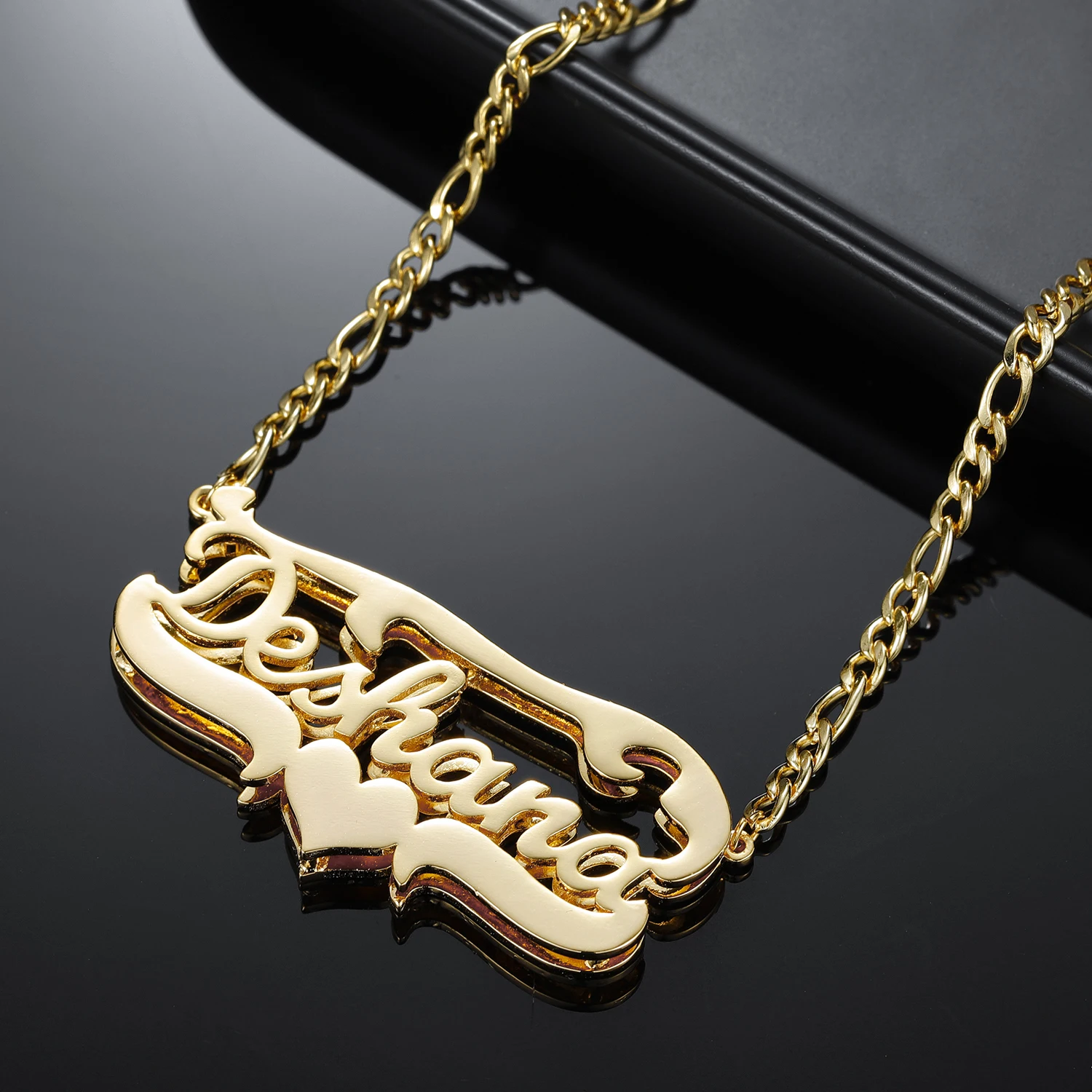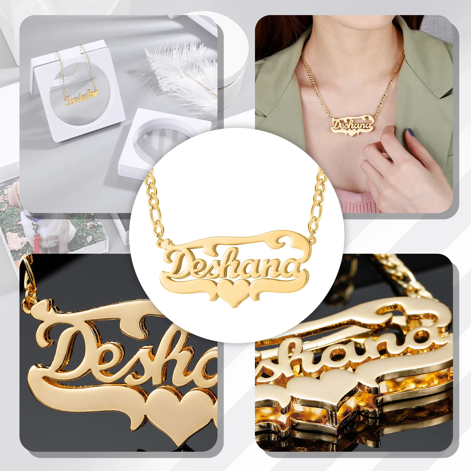 Ожерелье с именем на заказ, двойное позолоченное ожерелье 18 карат,...