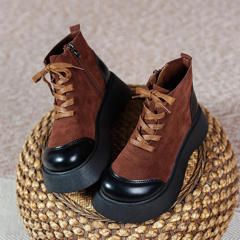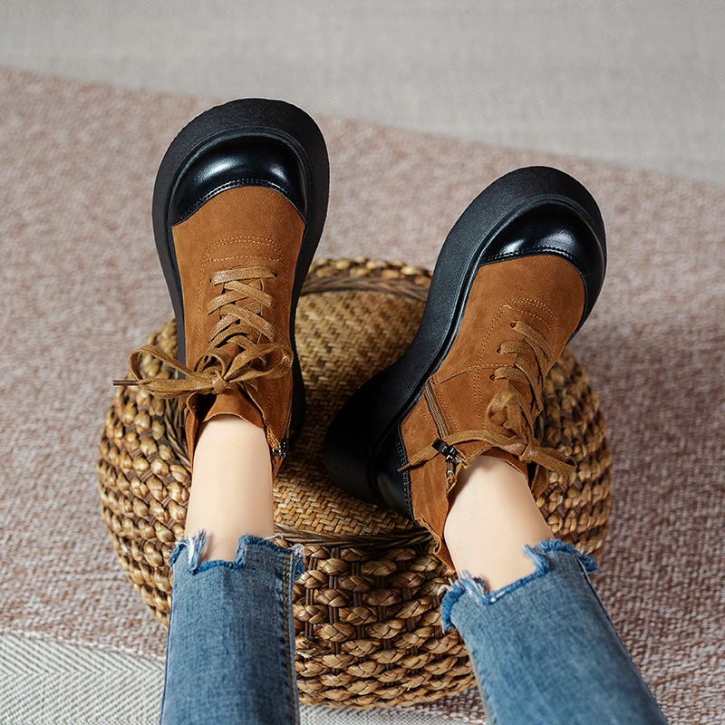 Ботинки на платформе с молнией, обувь из искусственной кожи для студентов, хлопковые ботильоны на платформе, женские ботинки, новинка 2021