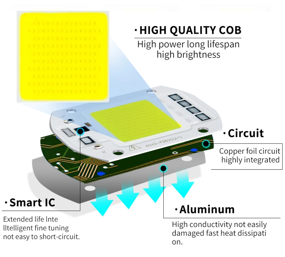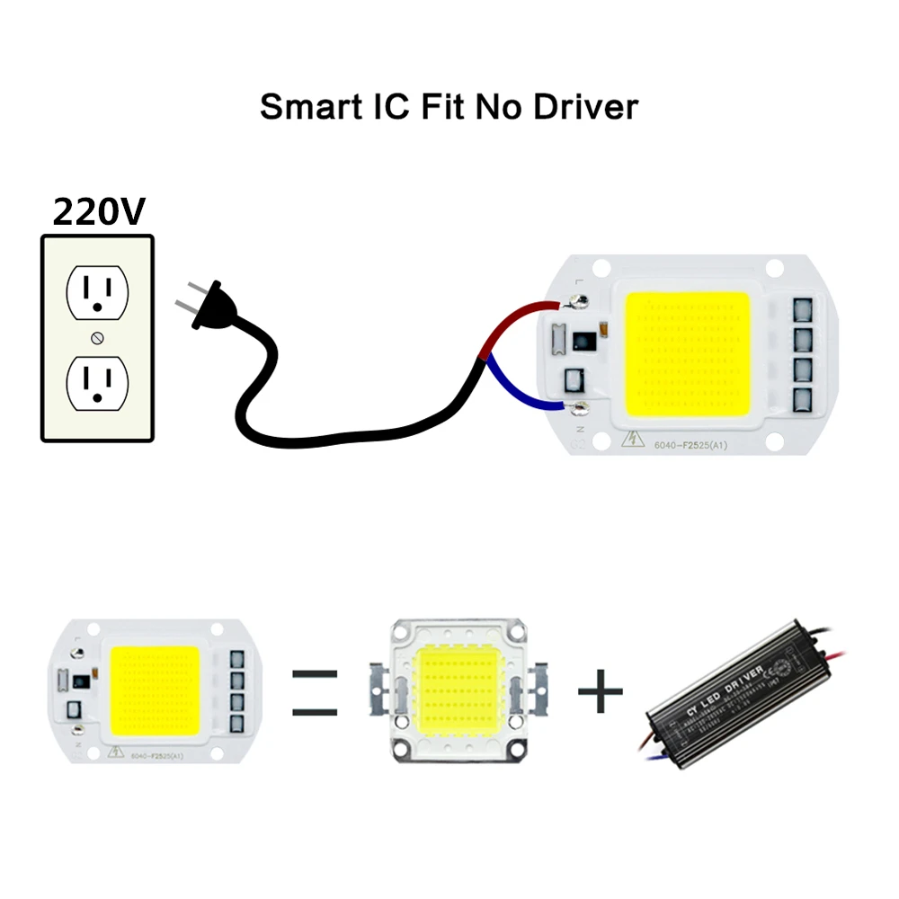 6 шт., светодиодные COB-чипы 10 Вт, 20 Вт, 30 Вт, 50 Вт, 110 В переменного тока, 220 В