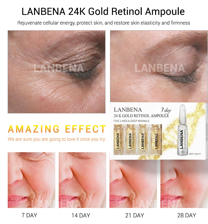 Серамидная ампула LANBENA, гиалуроновая кислота, осветляющая, витамин С, против морщин, питает, сужает поры, увлажняет, 7 шт. в упаковке